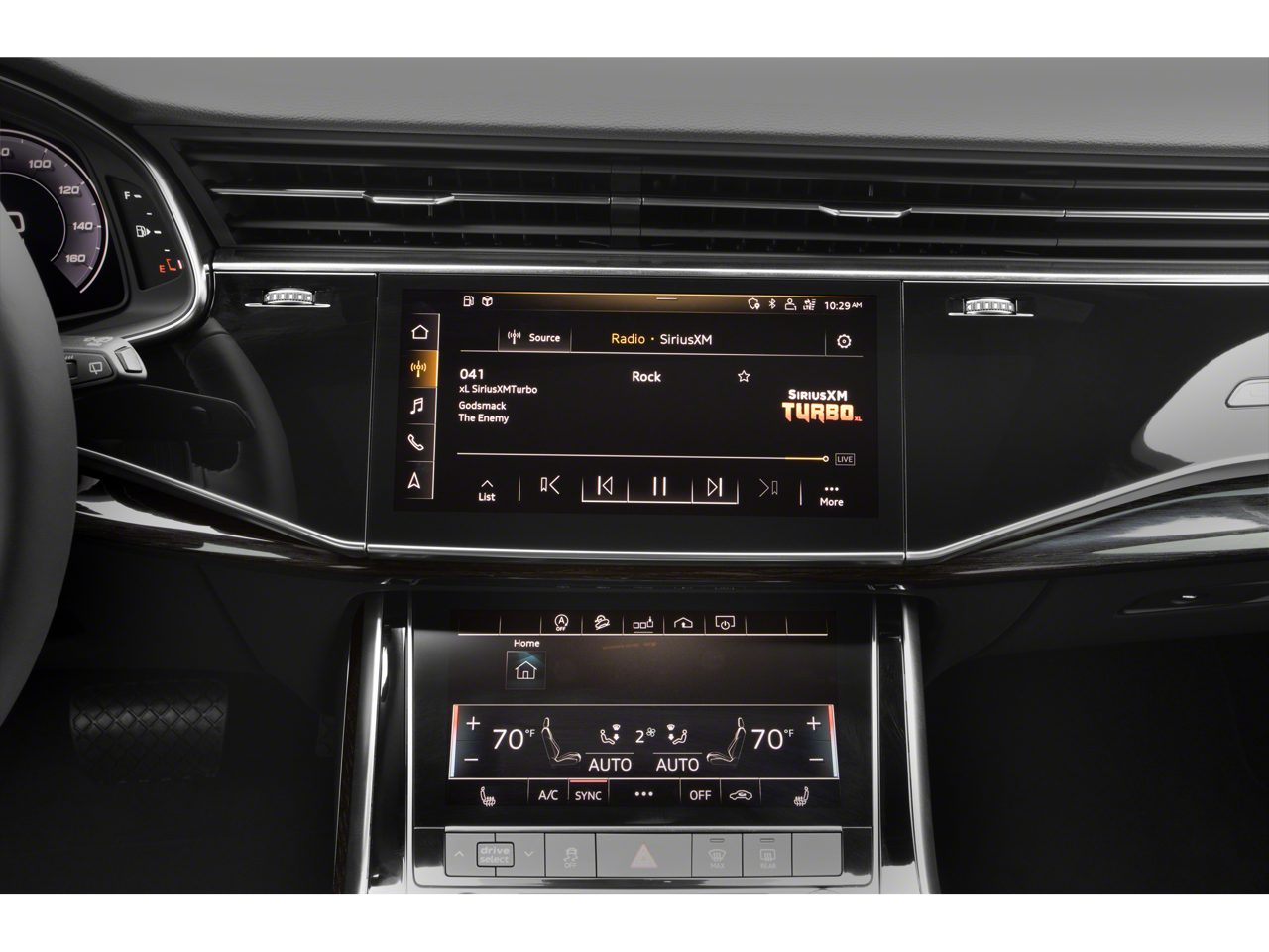 - Radio: Audi Sound System -inc: Audi smartphone interface (wired Android Auto and wireless Apple CarPlay), MMI navigation plus w/MMI touch response - 10.1" upper, 8.6" lower screen, preparation for mobile phone (Bluetooth) and SIRIUS satellite radio (w/3-month complimentary subscription)